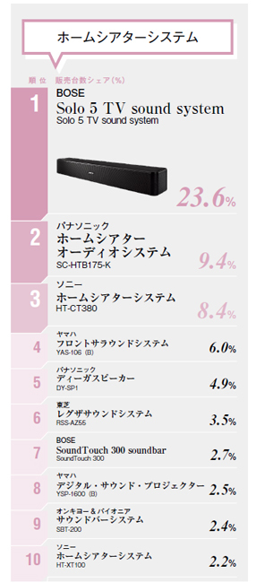 【2017年2月・機種別 売れ筋ランキング】ホームシアターシステム