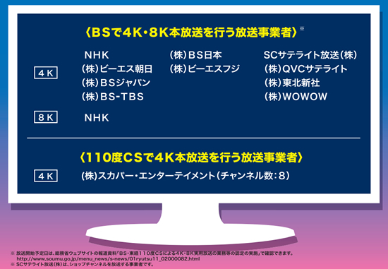 2018年12月から始まるBS・110度CSの4K・8K放送事業者