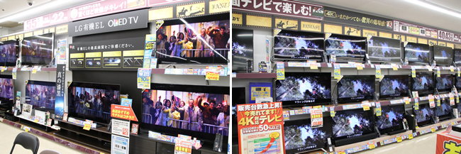 都内の店舗より多くの大型テレビが並ぶ