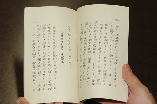見つかった小冊子は、3代目小泉重助が1930年(昭和5年)、ニューヨークのウォール街で起きた株式の大暴落が世界大恐慌の引き金となった翌年に、店員たちを励ますために書いた『不況対策と小泉商店』だ。
