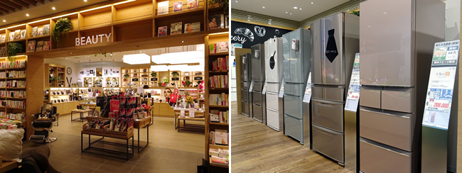 1階から3階までのフロアに家電と書籍・雑誌の売り場が混在しており、ファッション誌の近くに美容家電、暮らしやインテリアの近くに生活家電といったように、本を吸引力にした家電の提案を狙った商品配置を行っている。体験型の商品展示を充実させたほか、カメラ、美容、調理といった専門性の高い商品カテゴリには「スペシャリスト」と呼ぶ特に深い商品知識をもつ販売員を配置した。商品が消費者の自宅に設置された状態をイメージしやすくするため、商品自体には値札やPOP類を貼らず、価格や機能は商品横に立てたスタンドなどに掲示している。