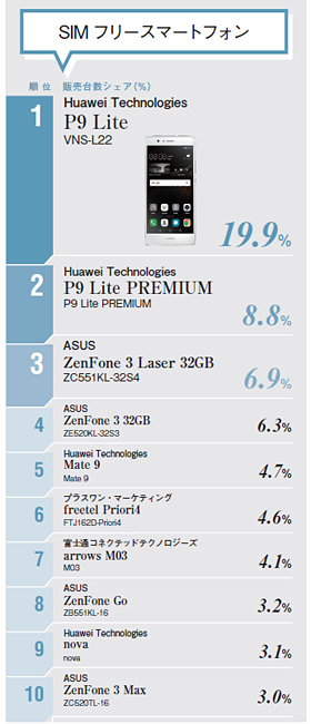 【2017年3月・機種別 売れ筋ランキング】SIMフリースマートフォン