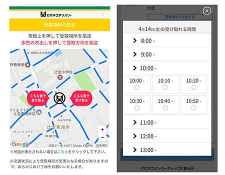 配送対応時間は8時~21時、利用方法はヤマト運輸の会員制サービス「クロネコメンバーズ」登録後、配送方法で「ロボネコデリバリーで依頼」を選んで、受取日時・場所を指定する。利用料は無料。