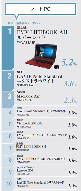 【2017年3月・機種別 売れ筋ランキング】ノートPC