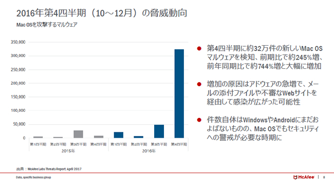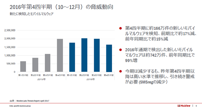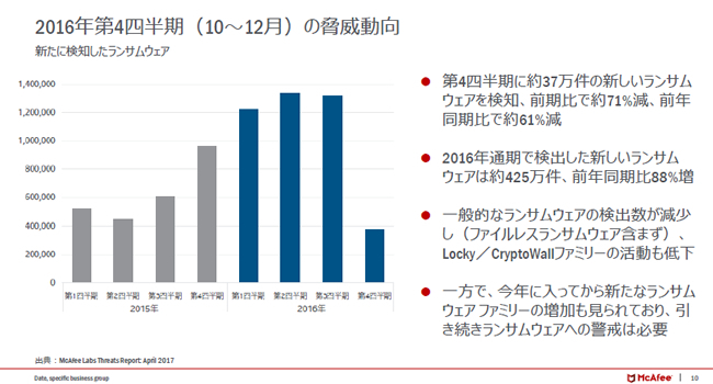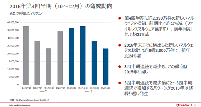 マカフィーは4月17日、2016年第4四半期(10-12月)の脅威動向に関するメディア向け勉強会を開催した。