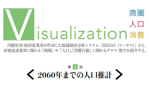【Visualization~商圏・人口・消費……地域経済分析システム「RESAS」より】 内閣府 地方創生推進室が作成した地域経済分析システム「RESAS」の「人口マップ」では、人口の増減数や就職・進学に伴う移動数、1980年から2015年までの5年ごとの実績値と国立社会保障・人口問題研所究所による予測をもとにした「人口ピラミッド」を公開している。