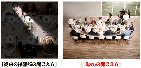 例えば、複数人で食事をするときや人ごみを歩くとき、従来の補聴器だと急に思わぬ方向から音が飛び込んできて戸惑ってしまうことがある。音がどこから発生したのか、何の音なのか判断する必要があり、脳に負担をかけるからだ。「Oticon Opn」は、より自然な音を耳に届けるので、疲労感や聞くことに使う労力が軽減され、脳にもやさしい。