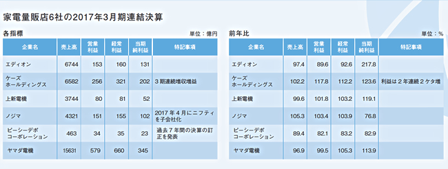 各種指標から、今後も景気拡張の可能性は高いとみられており、日経平均株価は1万9814円(2017年5月17日時点)と、2万円の大台超え目前にまで上昇している。そうしたなか、主要家電量販店の2017年3月期の決算が出揃った。