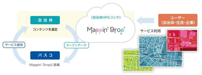 2016年12月の「官民データ活用推進基本法」の施行を受け、各種データを活用した安全・安心・快適に暮らすことのできる社会の実現のため、政府や地方公共団体などが保有する公共データのオープンデータ化が進められている。「Mappin’ Drop」は、自治体が「Mappin’ Drop」に各種データを提供すると、住民は、ブラウザで自治体のWebサイトにアクセスして、地図にピンを刺すような手軽さでカラフルな案内地図をデザインできるサービス。地形図をベースに、利用者は範囲や縮尺、表示させる道路などを決め、アイコン・画像・テキストを自由に配置できる。