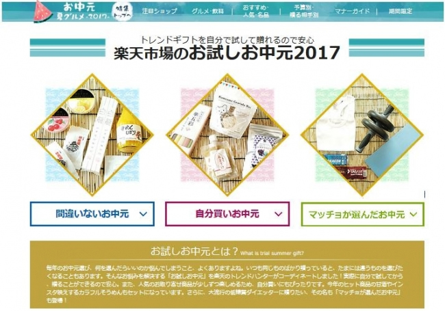 6月1日にオープンした楽天市場「お中元特集 2017」ページ