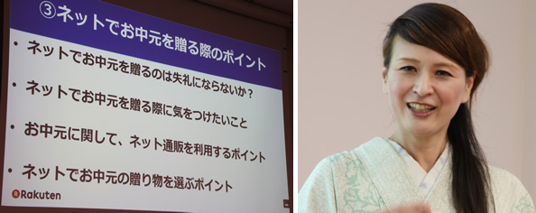 楽天は6月1日、東京・世田谷の楽天本社で、お中元のマナーを学べる講座「美味しく学べる 楽天市場 お中元の学校」を開催。あわせて、楽天市場のお中元の最新トレンドを紹介した。
