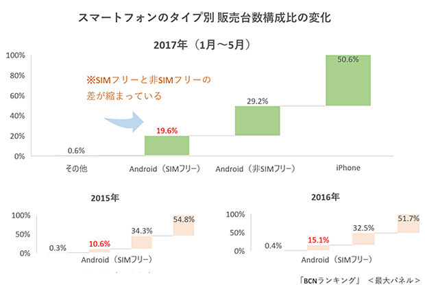 3カテゴリに分かれるスマホ市場 SIMフリー3割突破はいつか?