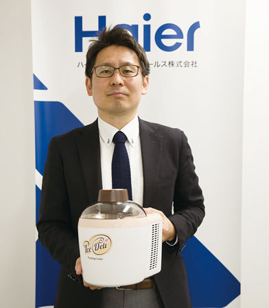 ペルチェ素子を使った冷却機能を搭載する世界最小のアイスクリームメーカー「IceDeli(アイスデリ)」は、まだ世の中に浸透していない「冷やす調理家電」の市場を開拓する。開発に携わったハイアールジャパンセールス・商品企画部価値創造プロジェクトチームの森脇利行部長に話を聞いた。