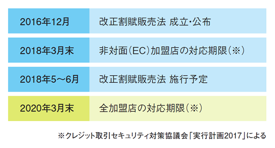 2016年12月に「改正割賦販売法」が公布され、実店舗、ECサイトを含むすべてのクレジットカード加盟店にセキュリティ対策が義務付けられた。小売業界には、システム改修などのコストと手間が強いられるが、対応が遅れれば、最悪の場合、加盟店契約を解除されるおそれもある。