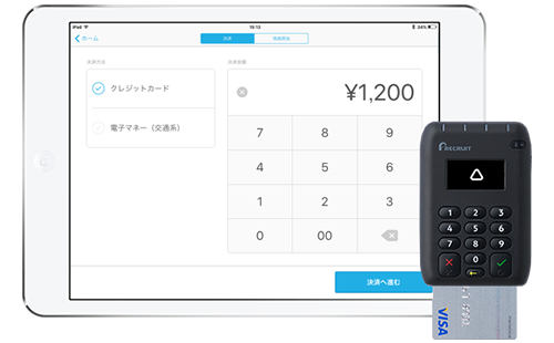 中小店舗向けに、スマートフォンやタブレットと決済端末を組み合わせて使う