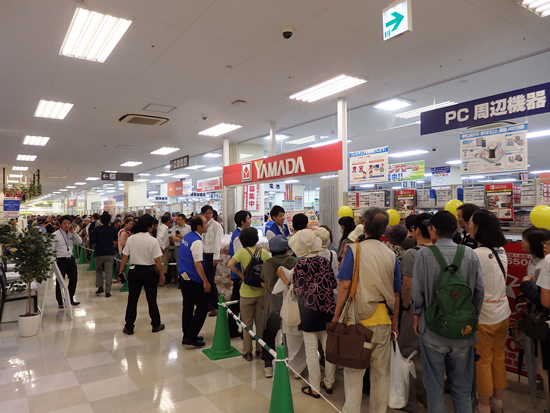 ヤマダ電機は6月30日、東京・北区に「テックランドダイエー赤羽店」をオープンした。平日の小雨が降るなかにもかかわらず、10時の開店を前に大勢の地元客が並んだ。
