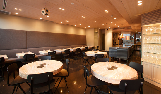 店内は客席と厨房の間に壁を設けないオープンキッチンスタイルとなっているが、これもスタッフの導線を最短にするとともに、厨房とホールの各スタッフが状況に応じて互いの業務を助け合い、サービスの効率を高めるための工夫のひとつ。また、ナイフやフォークはテーブルの引き出し内に収納されており、都度、運ぶ必要がない。フランス料理店の常識にとらわれることなく、上質な料理の提供に必要な要素だけに特化したことで、不要なコストやスタッフの負荷を削減しつつ、リーズナブルな価格が実現できた。