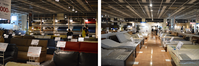 シーン展示のゆったりとした空間から一転、カテゴリごとの商品展示は品数を重視した陳列