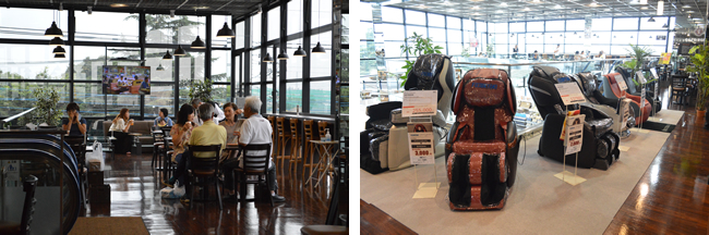 顧客が一息つくためのカフェとマッサージチェア