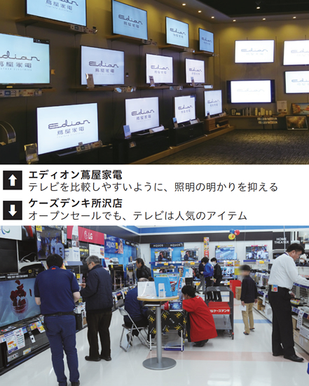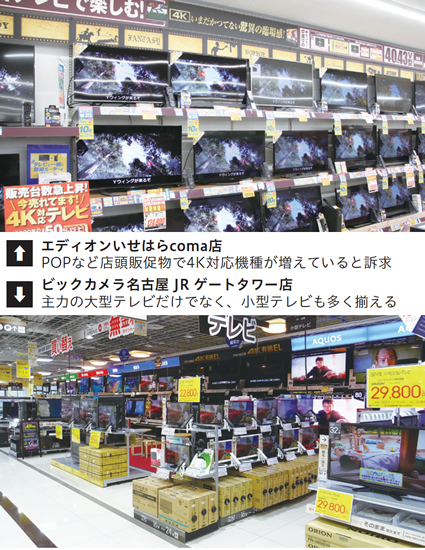 月次速報値を公表していないヤマダ電機も、17年3月期決算では「テレビに底打ち感が見られ、単価上昇、販売台数の回復で堅調に推移した」とし、テレビ需要復活への意欲を示す。6月2日から発売となった船井電機との独占販売による「FUNAIブランド」の4K液晶テレビをヤマダの店舗に陳列するなど、自らテレビ市場を創造していく姿勢を示す。