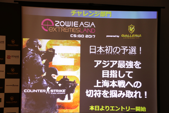 「チャレンジ部門」は、BenQのゲーミングブランド「ZOWIE」が主催するeスポーツ大会「eXTREMESLAND ZOWIE ASIA CS:GO 2017」(賞金総額10万ドル)の、日本代表決定戦も兼ねている。