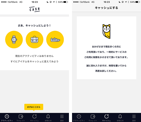 6月末に話題になった質屋アプリ「CASH」(7月18日現在、査定機能は停止中)