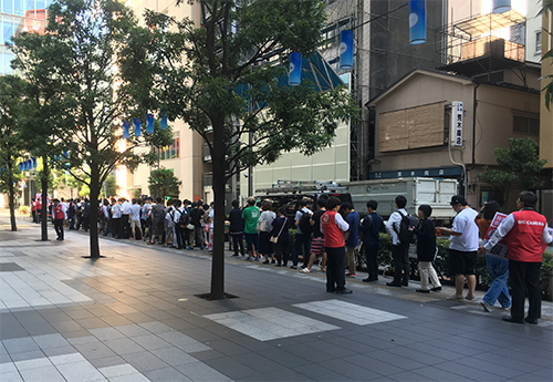 6月22日にグランドオープンした「ビックカメラ AKIBA」では、「Nintendo Switch スプラトゥーン2 セット」の抽選販売を実施。8時頃にはすでに抽選参加希望者が50人ほど並んでいた。