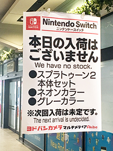 また、ヨドバシカメラの「マルチメディアAkiba」では「スプラトゥーン2」のソフト単体や関連グッズを販売。本体は予約受け取りのみで、販売はせず、次回入荷も未定だという。