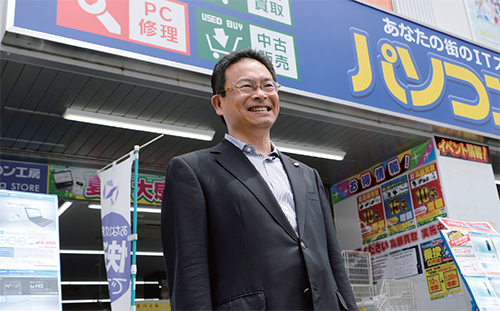 「次回はタコパにしましょうか」。取材後に、大阪・日本橋にあるパソコン工房の店舗前での端田社長の撮影の合間に、法人統括部の福留部長が笑顔で声をかける。目標を達成したら実施している焼肉大会を、次回はたこ焼きパーティにしたらどうかというアイデアが社員から上がっているようだ。店舗を出入りする社員の表情はみな笑顔で明るい。「もちろん、焼肉もたこ焼きも安い店ですがね」と、はにかむ端田社長との会話からも社員の距離の近さが伝わった。東京・秋葉原の新店オープンが楽しみだ。