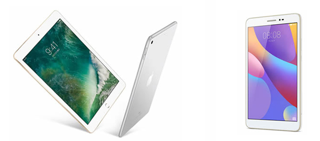 値下げで前年割れ状態から抜け出したiPad、ファーウェイ製品では「MediaPad T2 8 Pro」(右)などが人気だ