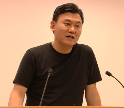 決算説明をする楽天の三木谷浩史会長兼社長最高執行役員
