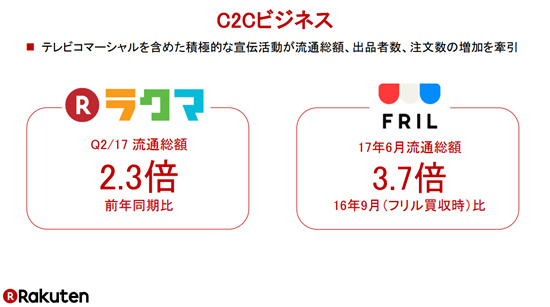 また、CtoCマーケットについて、三木谷会長は「年換算流通総額1000億円が視野に入ってきた。テレビコマーシャルなどを活用し、業界1位を目指す」と、展望を語った。