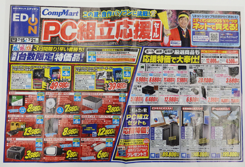 エディオンでは珍しい「PC組立応援セール」のチラシ