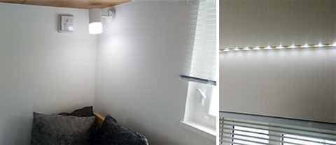 アプリで照度や色をコントロールできる照明や、朝になると自動的に開くカーテンで、良質な睡眠をサポートする