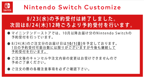 その影響で、Nintendo Switchの購入が困難な状況は依然として変わらず、消費者からは不満の声があがり続けている。任天堂は早朝からの回線混雑への対策として、23日の告知には「次回は8月24日(木)12時ごろより予約受付を行います」と時間を明記したが、アクセスが安定するのか保証はない。