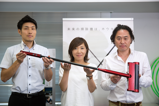 開発に携わったホームケアプロダクツ部商品化チームの三浦洋一チーフは「吸引機能がないのに集じんする掃除機の様子は、まるで魔法のよう。ブラシでごみをダストケースにかきこむ動きをほうきに例え、『マホウキ』と名付けた」と説明する。