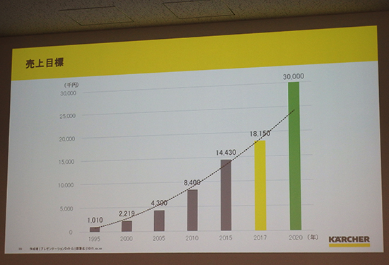 ケルヒャーは1988年に日本に進出し、社会貢献活動の一環として2000年の広島平和記念公園のモニュメント洗浄や10年の日本橋クリーニングプロジェクトなどで注目され、業務用や家庭用の高圧洗浄機メーカーとしてのブランドを高めた。ホームセンターやテレビショッピング、インターネット通販で販売するほか、最近では家電量販店でも売り場を確保し、週末は店頭イベントを実施するなど、消費者へのブランド認知活動も熱心だ。