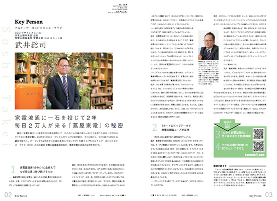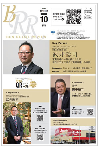 BCN(東京・千代田区、奥田喜久男会長兼社長)は、家電流通に携わる人に無料でお届けする専門紙『BCN RETAIL REVIEW』Vol.21 2017年10月号を9月25日に発行しました。巻頭インタビュー<KeyPerson>は、カルチュア・コンビニエンス・クラブ(CCC)の武井総司 家電企画事業部部長です。国内外のPC関連企業が参加した座談会のレポートなども掲載しています。本サイトまたは紙面にてぜひご一読ください。