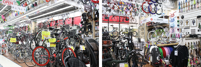 豊富な種類の自転車とオーダーメイド用のパーツ