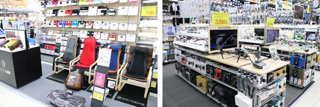 ドクターエアの専門コーナー(左)と、ドローンコーナー