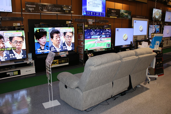 テレビ売り場にはソファを設置し、同時に提案しやすい環境をつくっている