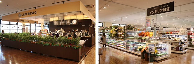 ヤマダ電機直営のカフェ(左)やインテリア雑貨の売り場