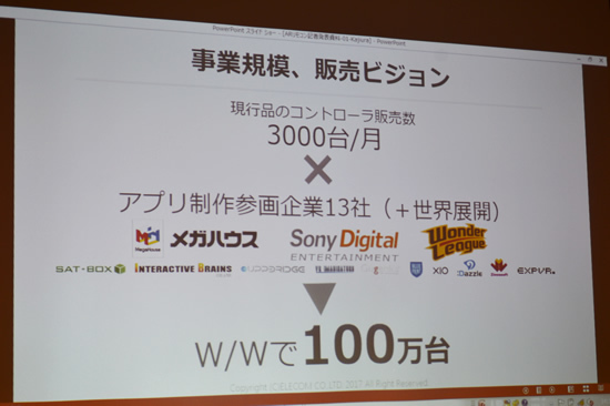 本体は6軸モーションセンサ―やアナログスティック、トリガー、音量調整ボタンなどを搭載。Bluetooth(2.4GHz)で2台までのコントローラをスマホに接続できるので、両手に持って操作することが可能だ。ゲームが主要な用途だが、不動産業界向けのソリューションなどのアプリも充実させる。現在、メガハウスやSony Digital Entertainmentなど13社がアプリ制作に参画予定。エレコム自身もこれを機にスマホゲーム市場に参入するという。