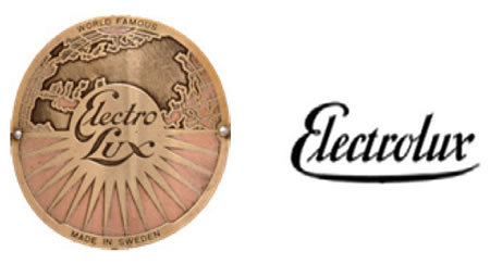 創業当時のロゴは、世界を照らす太陽を表していた。元は、前身でもある「Lux」時代に製造していたランプの光だったが、エレクトロラックスになると、さらに広くを照らす太陽の光に変更した。