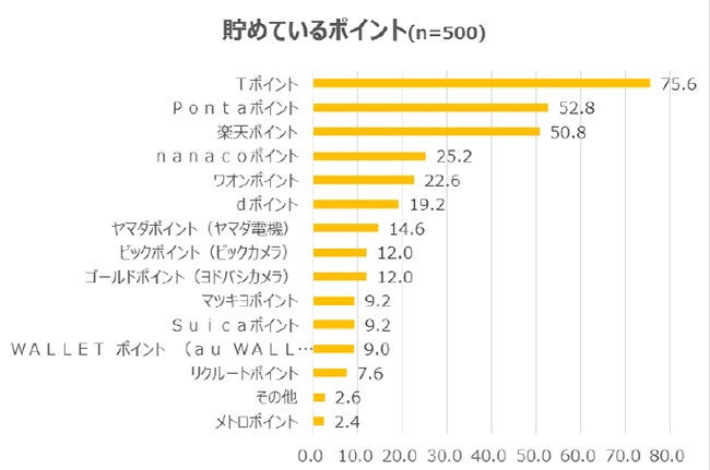 なかでも「Tポイント」は75.6%と、2番手以下を大きく引き離していた。