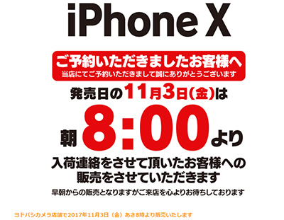 いよいよ明日発売になる「iPhone X」。ヨドバシカメラでは朝の8時から販売する