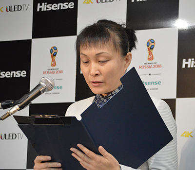 約130以上の国と地域で家電製品を展開する中国の総合家電メーカー、ハイセンス。グループ全体の売上高は約1.7兆円で、なかでもテレビは本国だけでなく欧米でも高いシェアを獲得している。2018年6月から開催されるFIFAワールドカップ・ロシア大会では、中国企業として初めてテレビのオフィシャルスポンサーに選ばれ、新モデルはスポンサー就任を記念した「World Cup Official TV」となる。