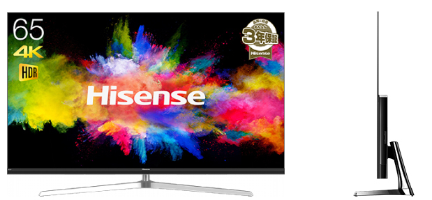 注目したい点は次世代ディスプレイULEDを採用していること。ハイセンスが独自開発したLEDバックライトパネルで、今年話題になったOLED=有機テレビに対抗する存在でもある。コントラスト、カラーレンダリング、高速応答性でOLEDに匹敵するが、コストは大幅に抑えられるのが特徴。現に新モデルの実勢価格は65型で25万円前後、55型で17万円前後と性能を考慮すると手頃だ。