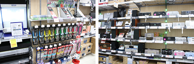 店内は、通路面の棚に安さ重視の商品だけでなくハイスペックな商品も配置するなど、東武百貨店に来店する消費者を意識して売り場をつくった。さらに、年長者に人気のホームカラオケやラジカセ、レコードプレーヤーなどを、大きなスペースを使って展開する。
