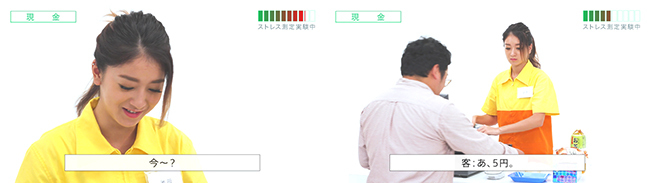 実験動画では、被験者としてモデルの「みちょぱ」こと池田美優さんが人生で初めてのレジ打ちに挑戦。ストレス測定器を装着した状態で、現金と、「SMBCデビット」の2種類の支払い方法でレジ打ちを体験し、どちらがよりストレスを感じるかを検証した。現金での支払いの場合、遅れて小銭を出してくるお客さんや、すべて小銭で払うお客さんに対してストレスを感じる様子を見せている。